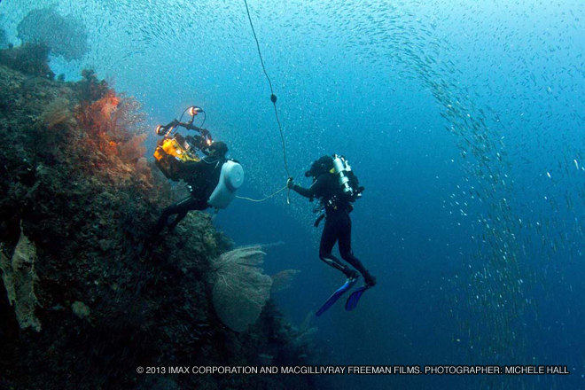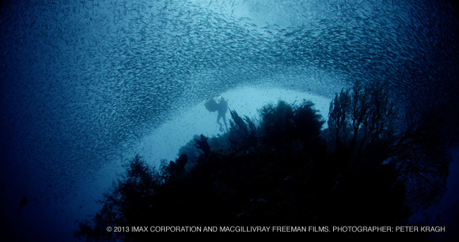 As I first dropped down to the reef at Grouper, I suspected the report was another false alarm. The reef was pretty and I saw small groups of anchovies flashing in the water above the corals. But I didn’t see the giant shoals of fish that I was hoping to find. But Pindito dive master Bob Brunskill beckoned us to follow and after a few minutes swimming out over deep water, we came upon a dark pinnacle that seemed to be undulating. As we got closer I could see that the pinnacle was engulfed in shoals of anchovies that rushed and flashed as Mobulas (a ray similar to manta rays) and tuna attacked the tiny fish.