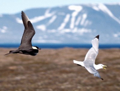 Skua attacking a kittiwake in Svalbard, Norway, where To The Arctic was filmed. Photo Courtesy Michael Haferkamp via Wikimedia Commons.
