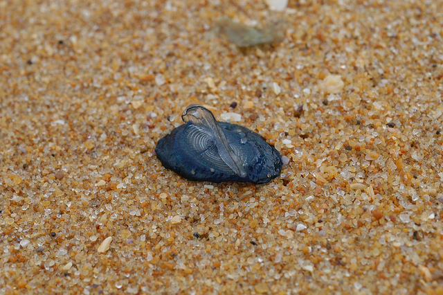 Though it has common names, such as the “by-the-wind sailor” and “purple sail,” this is one of the rare species that is also often referred to by its scientific name: Velella velella.