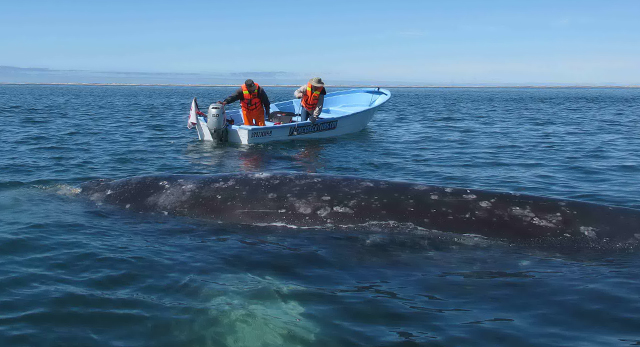I knew that every boat that comes here hopes to encounter “a friendly,” a whale that will tolerate a human touch. Still, I was wondering about bothering these beasts with the intrusion of our urge to make contact. My concern was dispelled by Jesus instructing, “If it comes to us, you have to pet it. If you don’t, it might leave.”