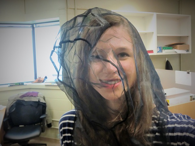 Dressed to impress in my snazzy bug repelling head net