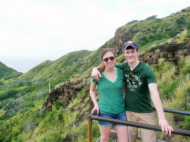 Taking a scenic picture with my boyfriend after hiking up Diamond Head State Monument in Oahu, Hawaii