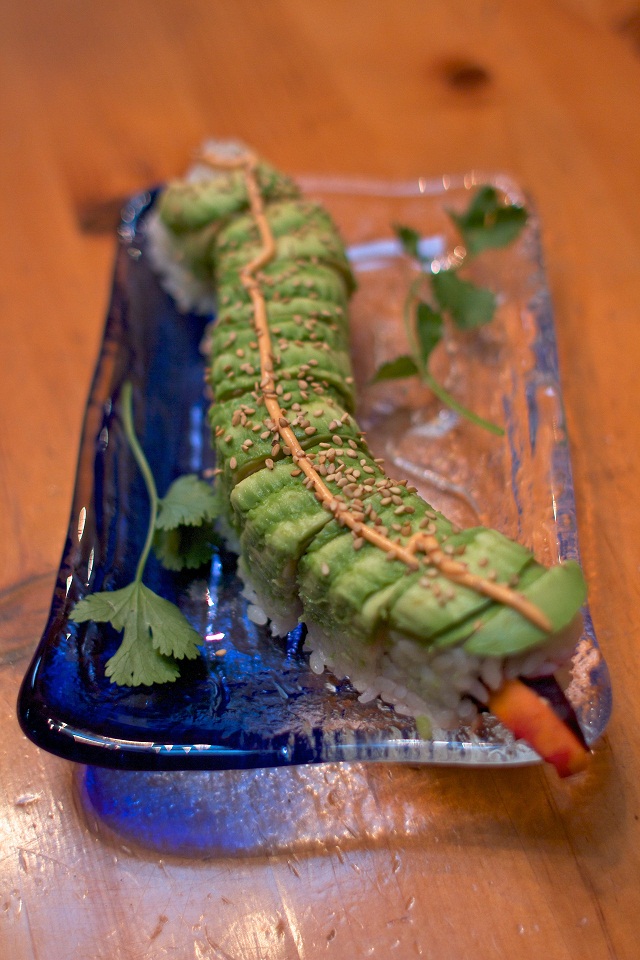 Nirvana offers many vegetarian dishes and is constantly changing their menu according to the season and what is available and sustainable. One of my favorite dishes is their Basil Aioli Crusted Arctic Char Trout, a delicious fish similar to salmon but without the “fishiness.” It is smothered in a delectable, homemade basil aioli and served with sautéed baby bok choy and organic jasmine rice (although I always request sautéed spinach instead). Arctic char is mostly farmed in the US in land-based, closed systems reducing pollution risk and habitat impacts. Char has a flavor profile between trout and salmon, with fat content close to sockeye salmon. The flesh is light pink with fine flakes. I recommend asking for it to be cooked medium rare, so it is flaky on the outside and moist and delicious on the inside.