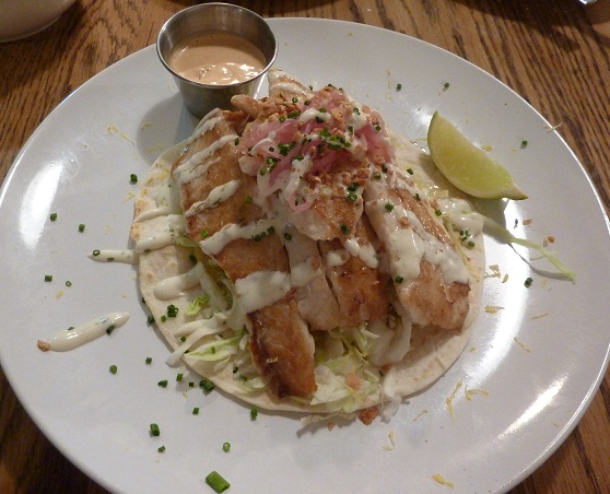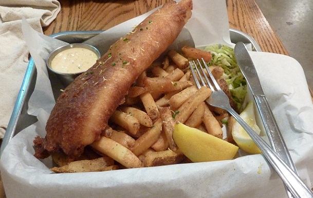 For our main course I chose the “Ultimate Fish Taco” which the server assured me was one of the best things on the menu and had won several taco awards in Orange County. The taco was large, with huge pieces of hake, seared to perfection. The lemon aioli and coleslaw that accompanied it were a perfect match, slightly sweet and acidic but not overpowering. My husband chose the fish and chips which were also made from hake, a sustainable white fish, and he said that the batter was light and fluffy, not dense, and were ideally crisp. The large steak fries were equally delicious, especially with a dash of Slapfish’s homemade habanero hot sauce (which we bought a bottle to take home).