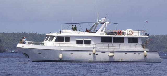 The plan was to make the 24-hour crossing to Vava’u at 6 the next morning, so we had to get all the gear on board before the sun went down. It takes a while to figure out where everything is going to go, and physically, loading 95 cases of camera equipment is pretty tiresome. Luckily we had a lot of help from some of the local crew at Nuku’alofa. They grow them big and strong here and they are always ready to help, which is appreciated when you are loading three tons of gear. Seti and Joe, the engineer and the deckhand, both stand over 6 feet, and at well over 230 lbs, they put some power behind the effort. We were told that the seas were going to be rough, so we strapped down everything on the top deck and organized the gear on the bottom deck to minimize any cases falling.
