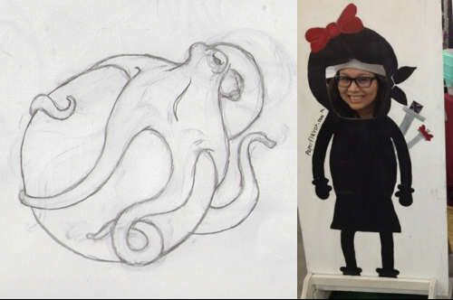 The art ninja at right is responsible for this oceanic octopus drawing. |