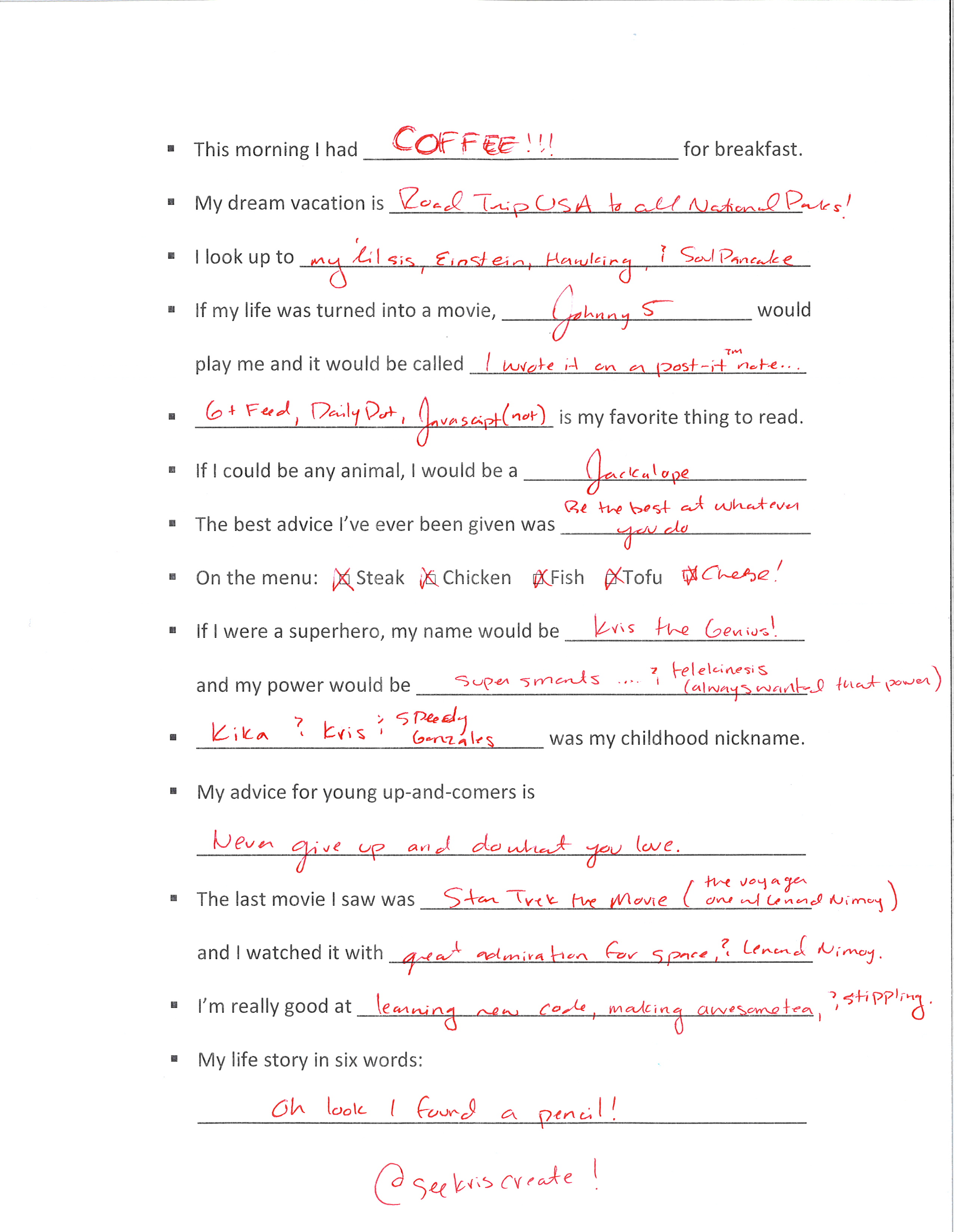 The ocean-themed art prints on the wall – Steve Zissou by Tim Doyle, a fire-breathing nautilus – and the designer toys, among them a purple robotic crab, should be a hint: Kristina Gonzales is an artist and loves ocean critters. As designer and developer, she performs a wide range of tasks for the campaign. Her skills as a self-taught coder have been heavily put to use on the campaign website, but more than that, she’s a creator. As a graduate from Laguna College of Art and Design, she does everything from designing animated characters with the Digital Media Team, to creating page layouts, posters, video graphics, logos; her talents as a graphic designer and illustrator are apparent. In her own words, “I run up and down stairs all day” – in reference to her great efforts to collaborate with various departments throughout our multi-leveled office. When she is at her work station, she can be found jamming away to anything from Arvo Part to Deadmau5. Below is a bit more…